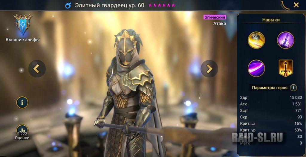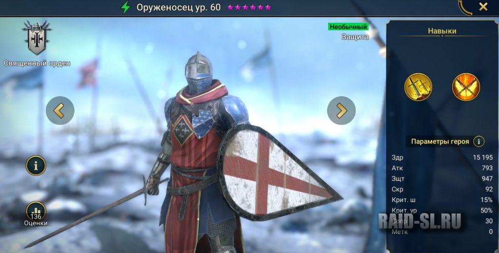 Несмотря на то что его урон на 15% ниже чем у Элитного Гвардейца и на 25% ниже чем у привычного Холодного Сердца – все-же он крайне стоящий. Его МЗЦ атака является массовой и имеет приятное дополнение в виде Оглушения целей. Провокация на базовой атаке так же помогает контролировать мобов.