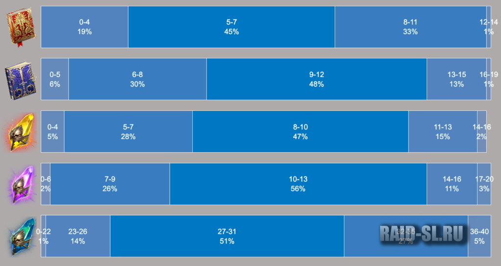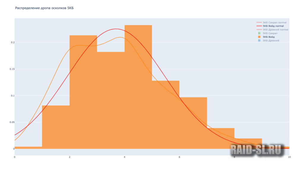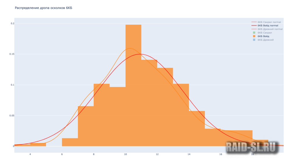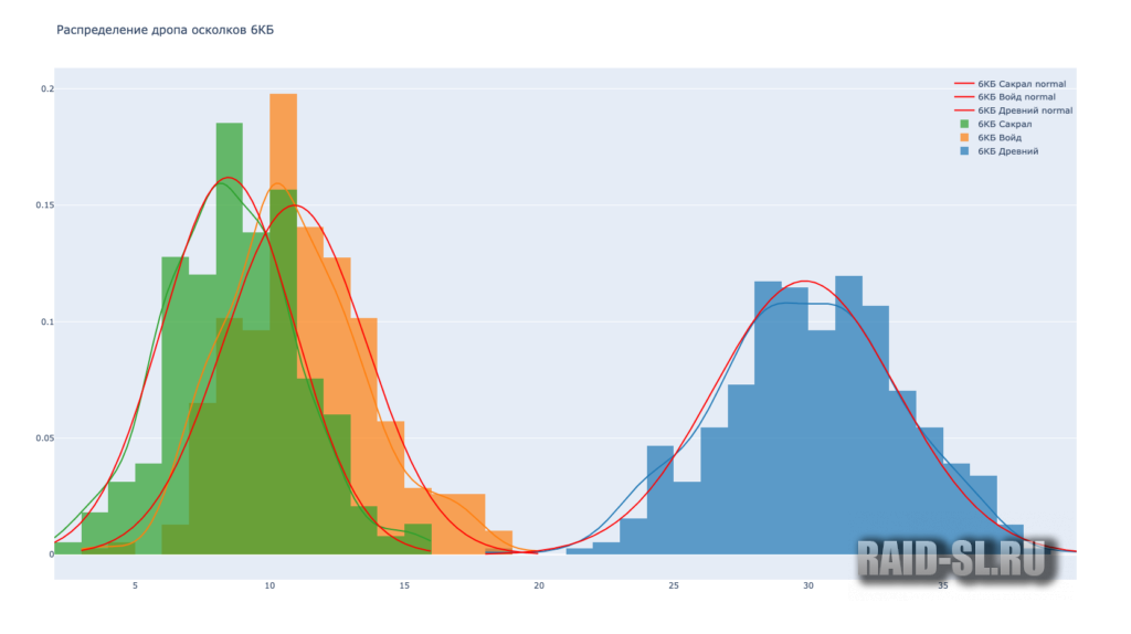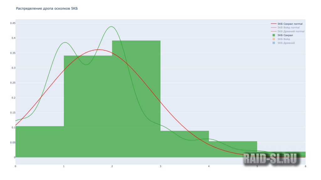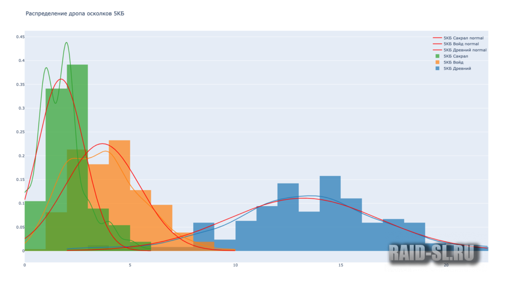 Ниже распределение дропа по 5-6 КБ с двух сундуков. Например, из картинки с 6 КБ мы видим, что половина игроков получает 8-10 сакралов в месяц. Меньше 4 или больше 15 – почти никто.