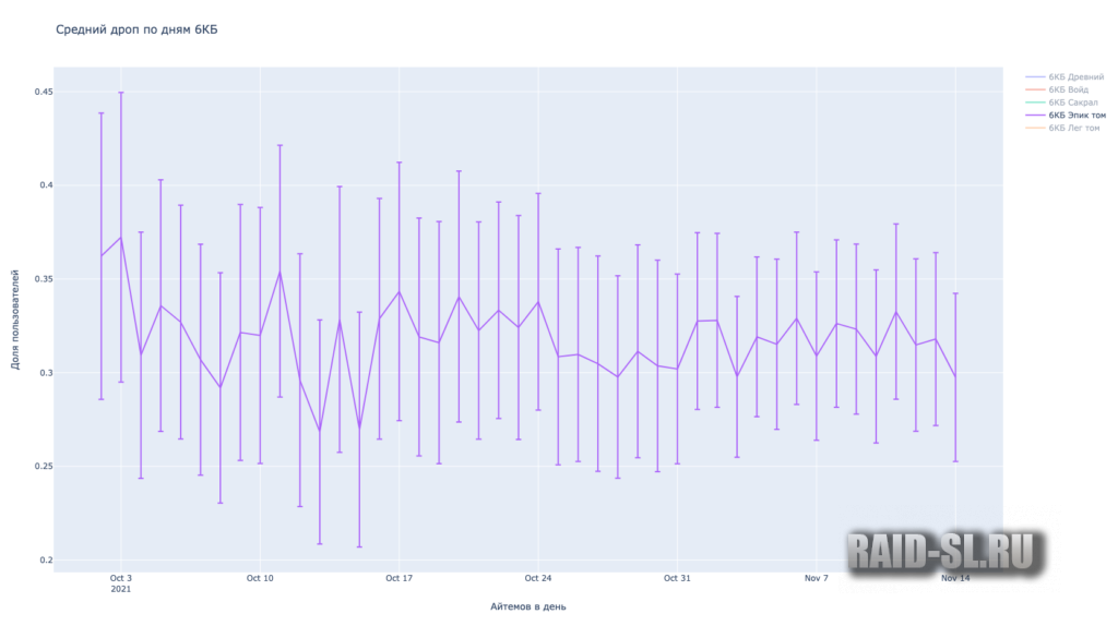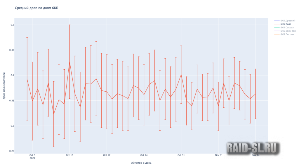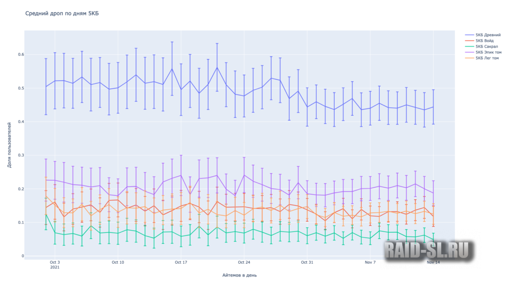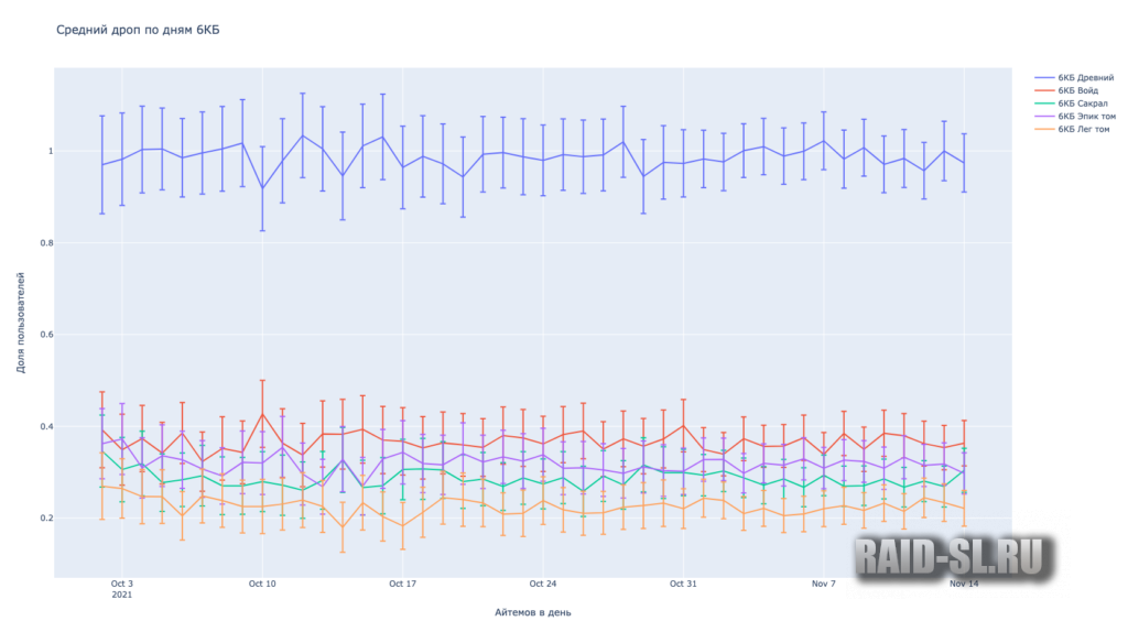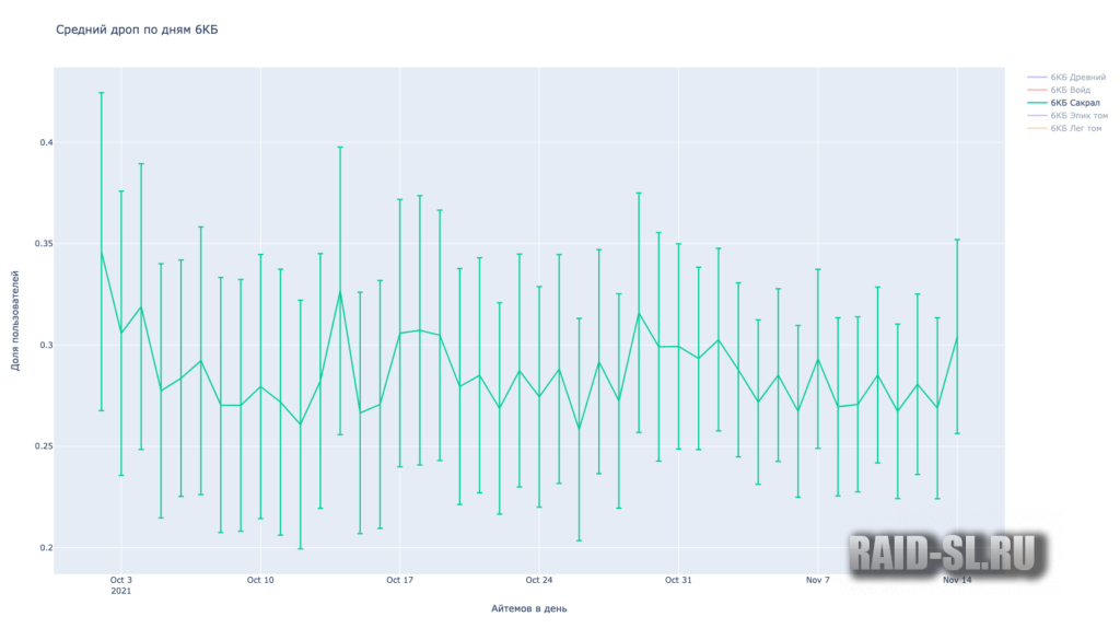 Очень хочется верить, что эти 10% взялись из-за того, что люди неправильно вносили дроп или мы взяли дроп не за полный месяц. В таком случае, можно было бы говорить о гаранте в 6 сакралов в месяц для тех, кто забирает 2 6х КБ каждый день.