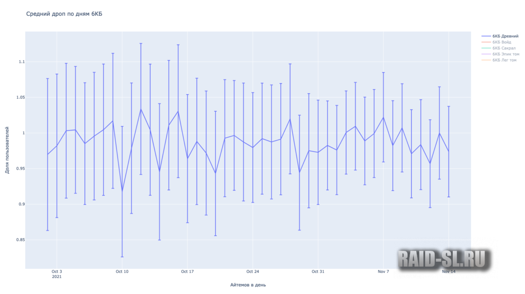 Итак, на графиках мы видим кол-во дропа определенного айтема в зависимости от даты.