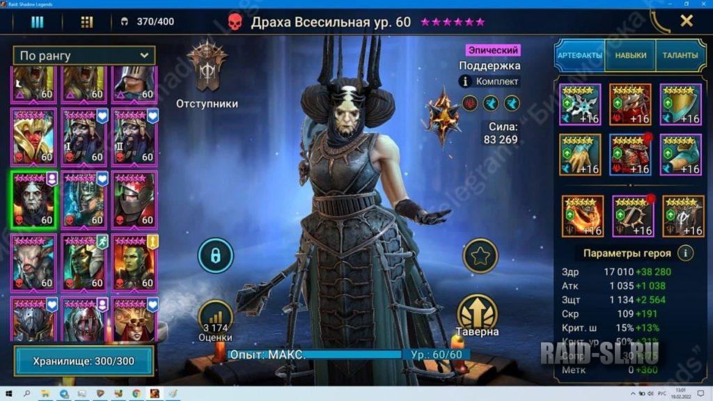 Как видим Драха тут вообще не для урона, её цель держать штраф атаки и держать команду 😉