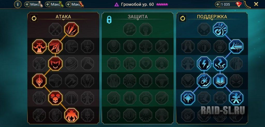 - 3 волна КБ – используем бафф защиты и возрождение от Громобоя, что на следующий ход увеличивает бонус щита Валькирия, а также, если Босс убивает кого-либо одиночной атакой, то герой возрождается.