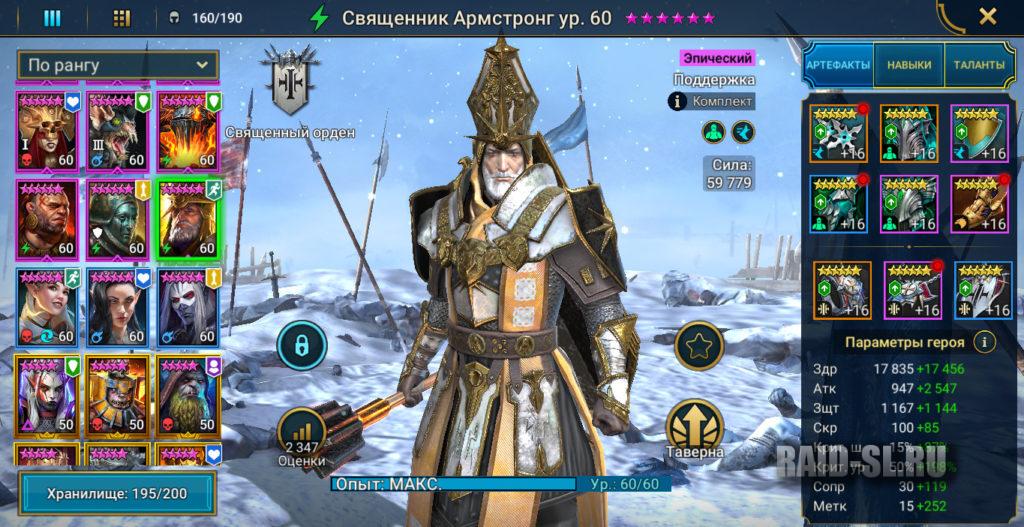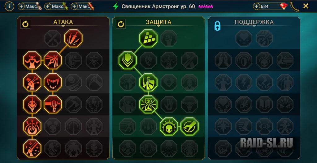 Священник Армстронг – прекрасный герой, который совмещает в себе много полезных функций. Аура скорости, Разлом, Залив позволяет снизить требования всей команде. Единственный его недостаток в паке с блоком урона это Паразит, занимающий слот штрафа.