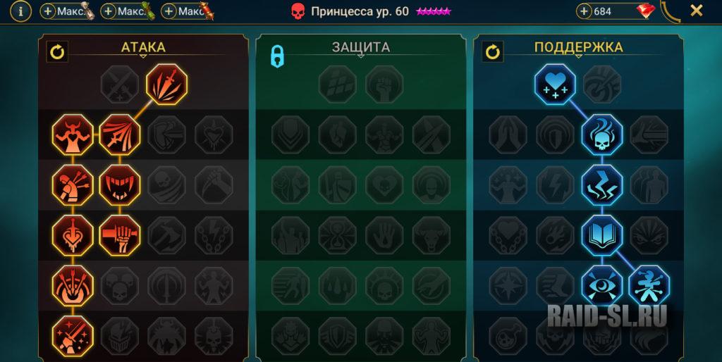 Принцесса – изюминка команды. Редкий герой с кампании раскрывается на все 148%. Каждый ход кб она Снимает стан и вешает Бонус скорости, а гарантированная пассивная контратака позволяет держать приемлемое число ядов от сета.