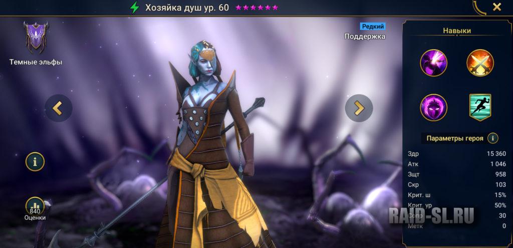 Один из самых лучших героев поддержки среди Редких героев. Хозяйка душ дает вам две необходимые вещи на Арене: аура скорости (не стоит считать, что 10% скорости это мало, если ваша скорость будет хотя бы на 1 выше, чем у врага, этого будет достаточно) и бонус 50% к атаке союзников. Все остальное, что она дает вам, это просто приятный бонус к этому герою.