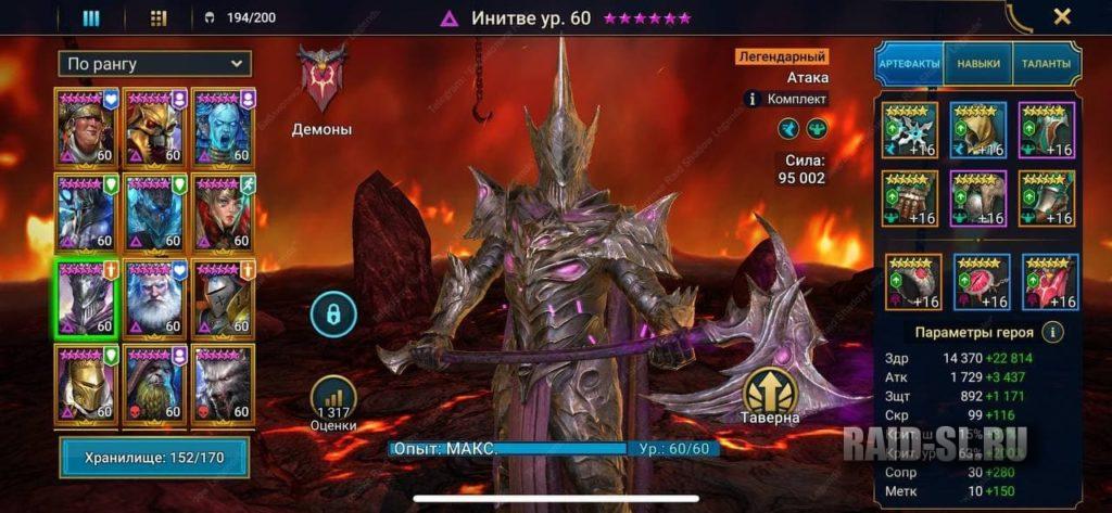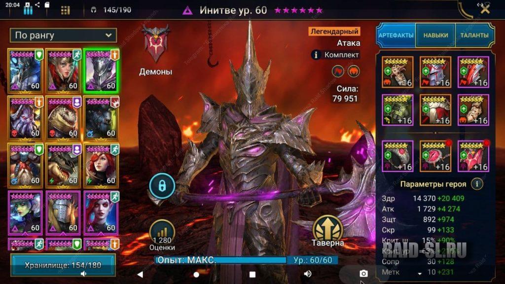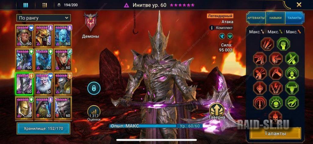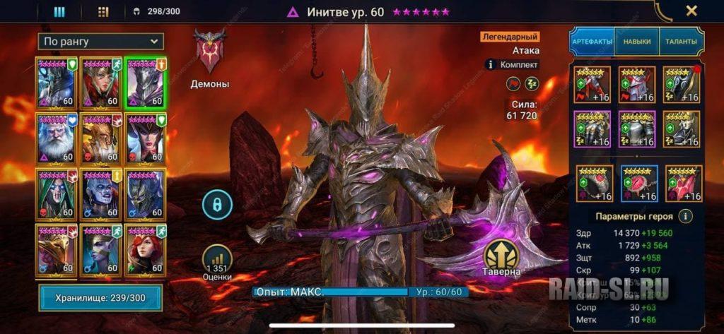 Итак, перед нами Интиве. Это легендарный герой. Он относится к фракции Демонов. Сам же он относится к героям Атаки, а его стихия (как и полается истинному демону) Тьма. Сложно сказать, что он лучший из лучших, но он может показать свою силу и полезность. Да и в этой игре столько героев, что всегда можно найти что-то чуть лучше. Даже если это будет лучше всего лишь на пару процентов.