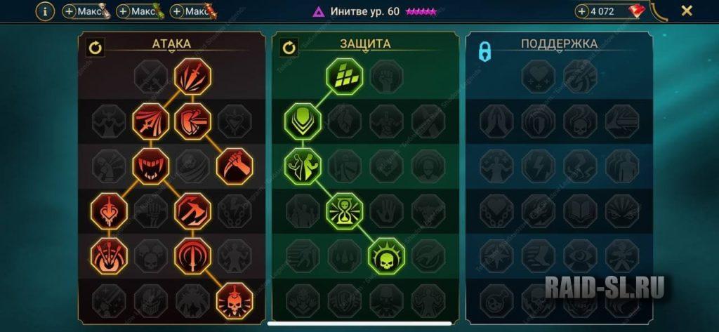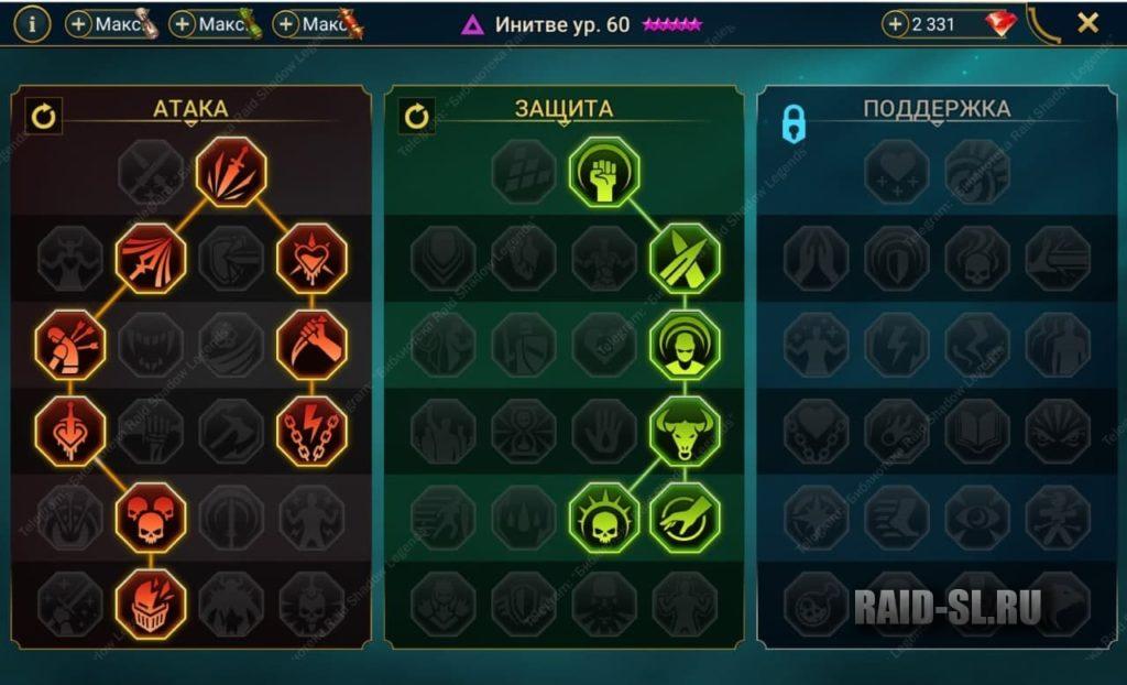 Здесь взят талант «Крушитель шлемов». А в остальном все стандартно. Зеленая и красная ветки.
