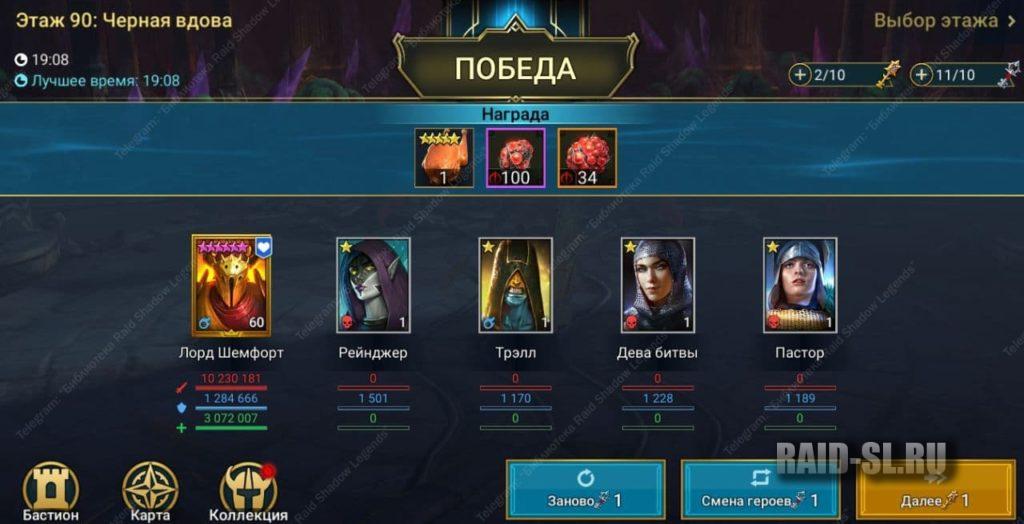 Снова сборка от @Sergej_Xa0S. Здесь используется сет «Регенерация», но тут идет расчет на девяностый этаж Роковой башни. Под босса Черная вдова.