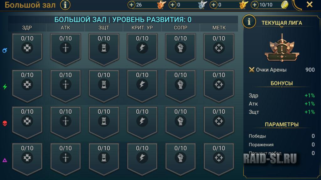 Статистика, которую вы получаете за увеличение уровня вашего Большого Зала работает для всех ваших героев. И получается, что если у вас есть 400 героев, значит все 400 могут получить бонусы на защиту, крит. урон или сопротивление. А это повысит вашу Силу Игрока.