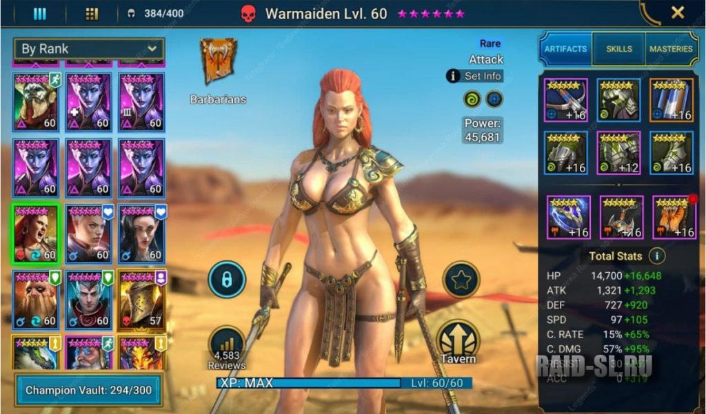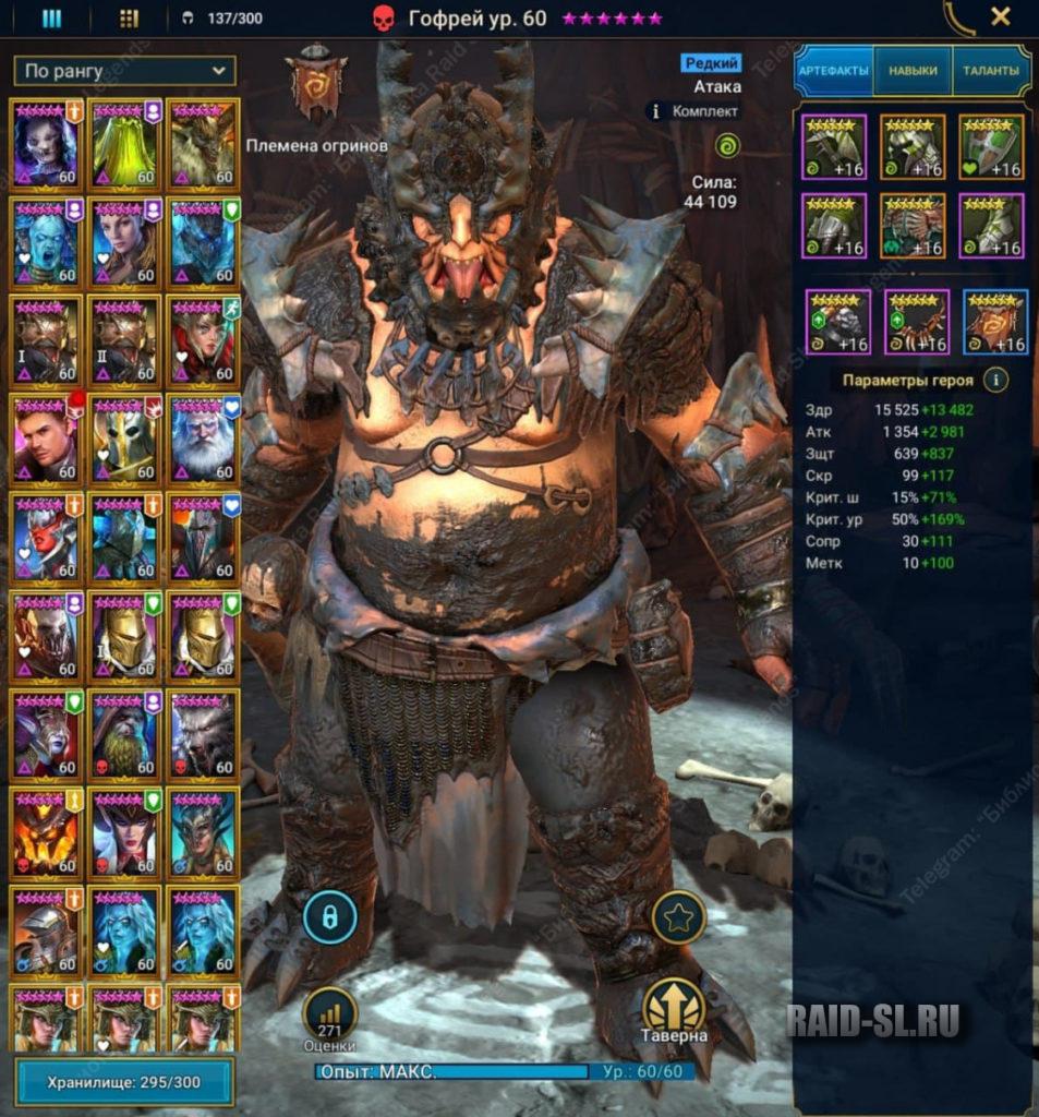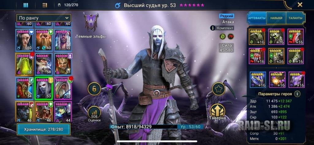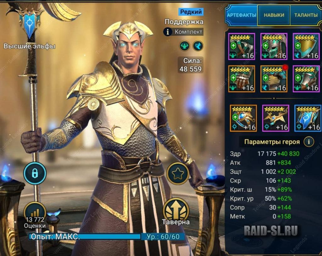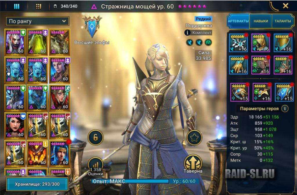 Знаменит свой массовой заморозкой на а2 с откатом в 3 хода, так же способен прикрыть себя щитом и контратакой с а3, при этом базовый навык накладывает на противников провокацию с шансом 70%. При выборе комплектов обратите внимание на сеты реакции, доп хода, а также любые контроль сеты. Отлично себя покажет и на войнах фракций и в 12 потайной комнате.