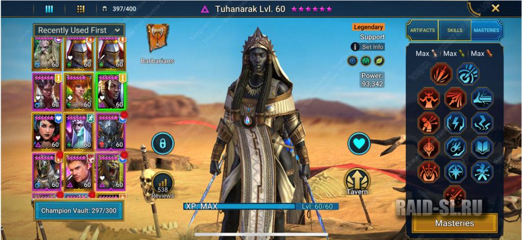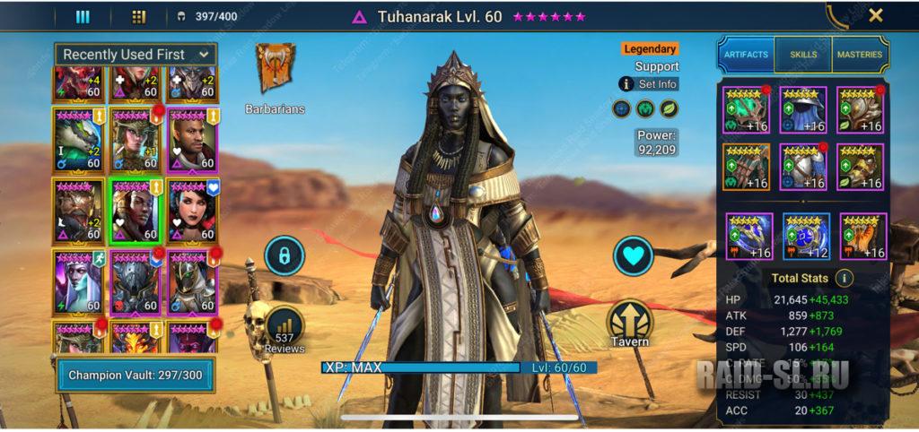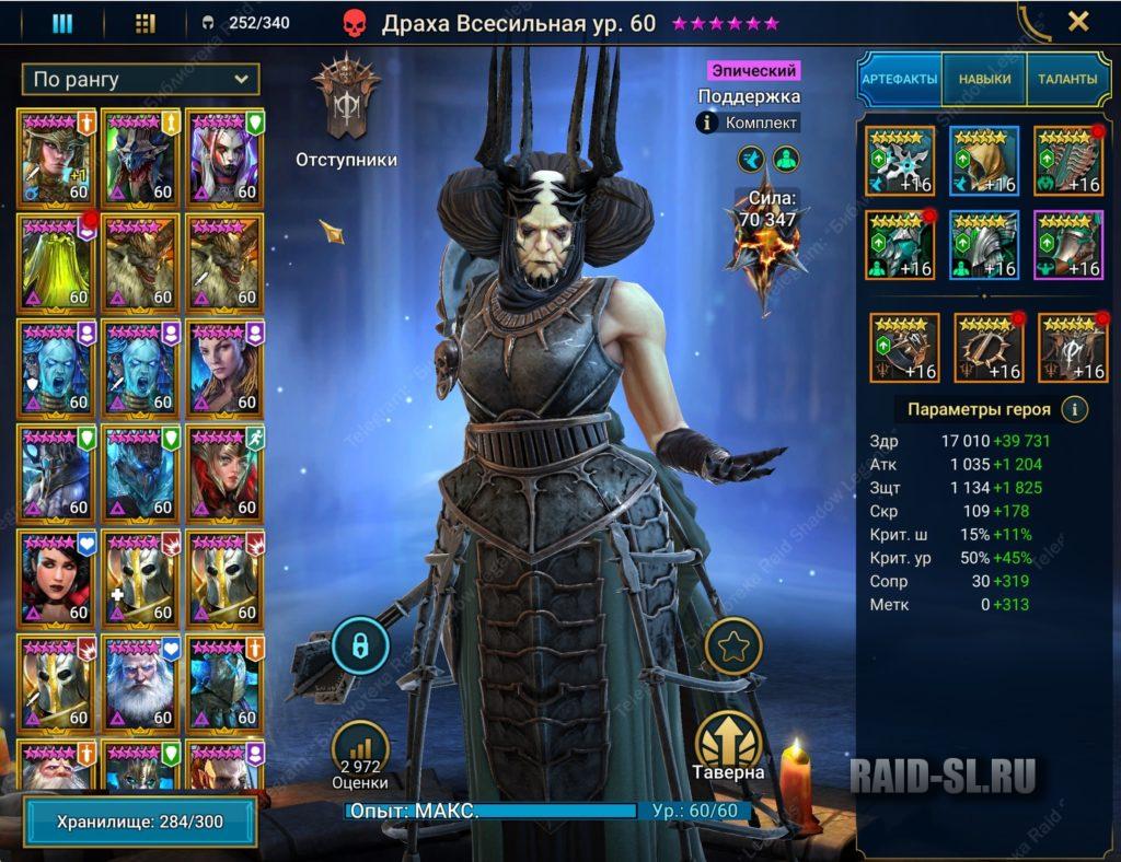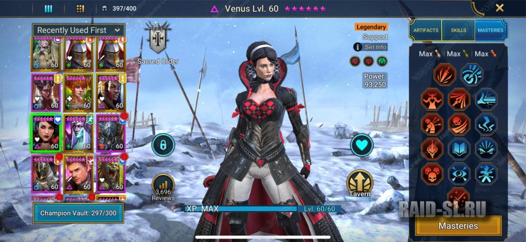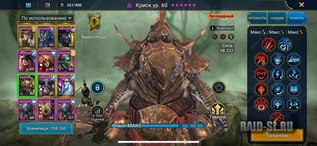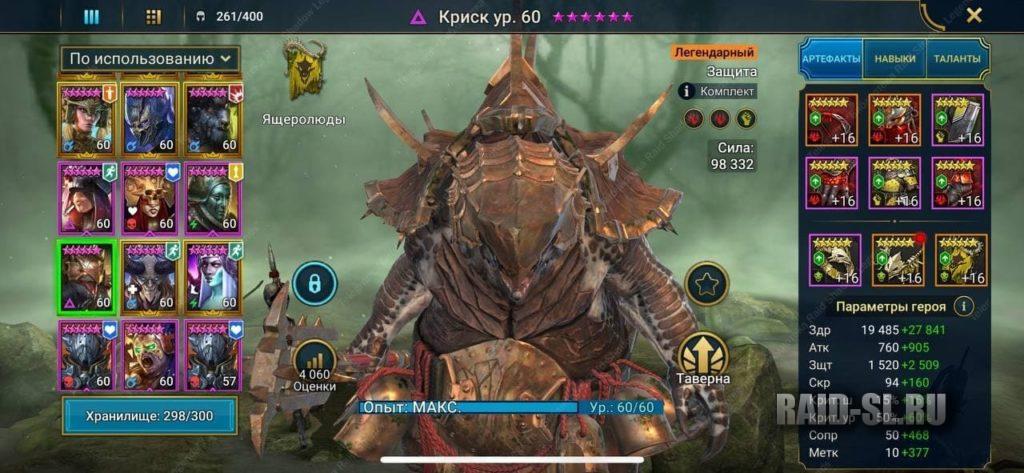 Продление бонусов, баф и штраф скорости, пассивный навык, отличные базовые характеристики делают его идеальным героем для защиты вашей пачки от ударов голов Гидры. При его экипировке учитывайте требования по сопротивлению и меткости.