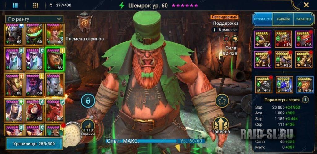 - Шемрок, он альтернатива Сифи в компанию к Шамаэлю, ну плюсом он еще и бафы с гидры может снять.