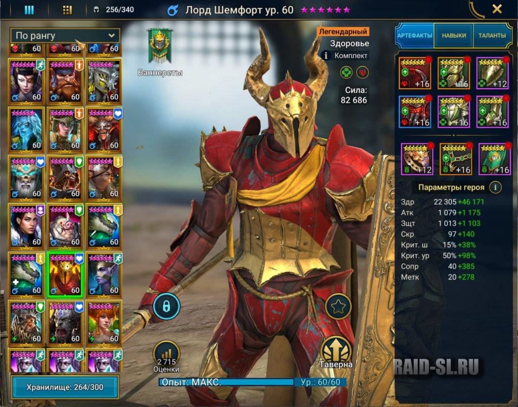 - Шемфорт, это если вам не повезло и Криска не поймали. Ему важно собрать сопротивление, чтобы голова вор постоянно фокусила его, а делать это она будет из-за его пассивки на щит, ведь число его бафов будет n+1, где n число бафов команды, кольцо кровощита тоже лишним не будет, но и не забываем про массивый штраф атаки и меткости, а так же разлом с а1 (вероятность могла быть и выше для леги).