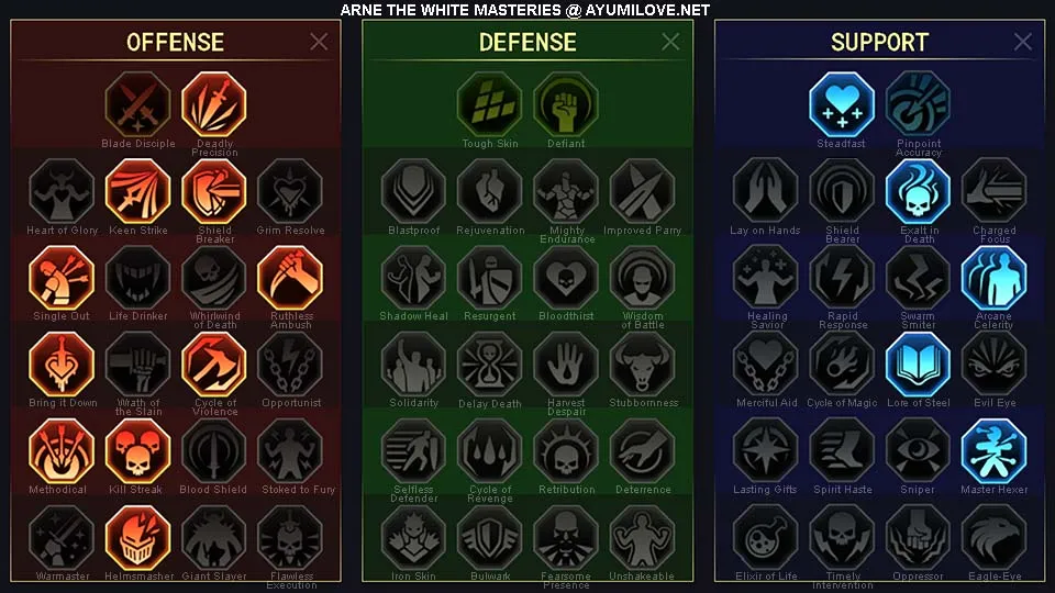 В этой форме механики Арна вращаются вокруг силы Смертельного клейма. Этот эффект накладывается через его А3-навык и блокирует возрождение врагов, убитых под его действием. Он также дарует союзникам Увеличение атаки и Увеличение меткости, позволяя и себе, и тиммейтам наносить больше урона и гарантированно накладывать эффекты на целей с высоким сопротивлением.