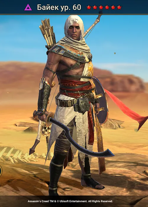 Байек Raid Shadow Legends – легендарный защищающий Чемпион из фракции Варвары, относящийся к стихии Тьма, стал доступен в январе 2026 года в рамках коллаборации со вселенной Assassin’s Creed.