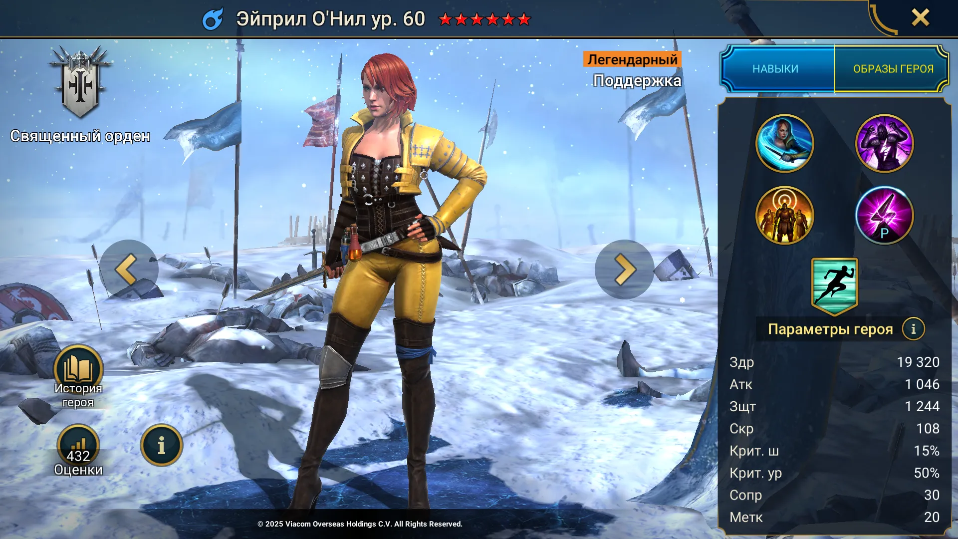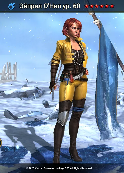 Эйприл О Нил Raid Shadow Legends – легендарный чемпион слияния фракции Священный Орден стихии Магия, герой в роли поддержки. Эйприл прибывает в Телерию в рамках специального коллаб-ивента Черепашки Ниндзя в Raid: Shadow Legends. Вместе с ней появились Леонардо, Рафаэль, Донателло, Микеланджело и грозный Шреддер.