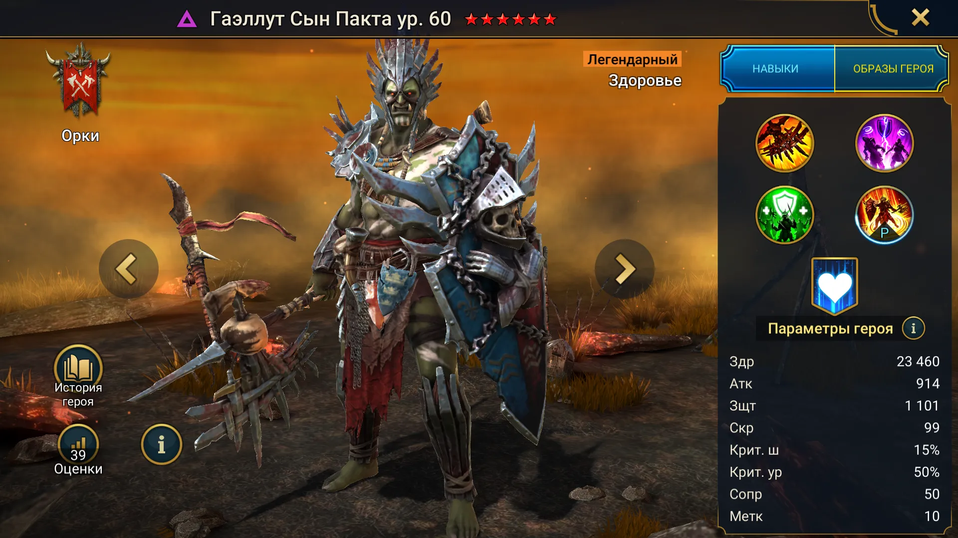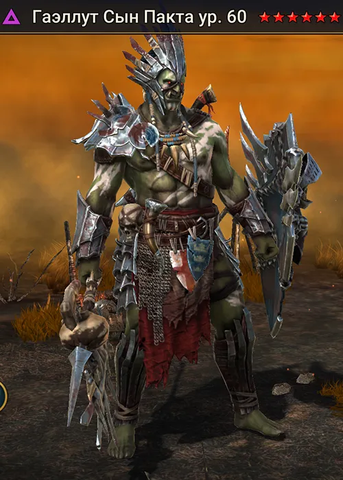 Гаэллут Сын Пакта Raid Shadow Legends – это легендарный поддерживающий Здоровье чемпион из фракции Орки, герой стихии тьма. Этот воин — великий защитник Гаэлленского Пакта, обладающий силой очищать союзников от вражеской магии и ограждать их от вреда.