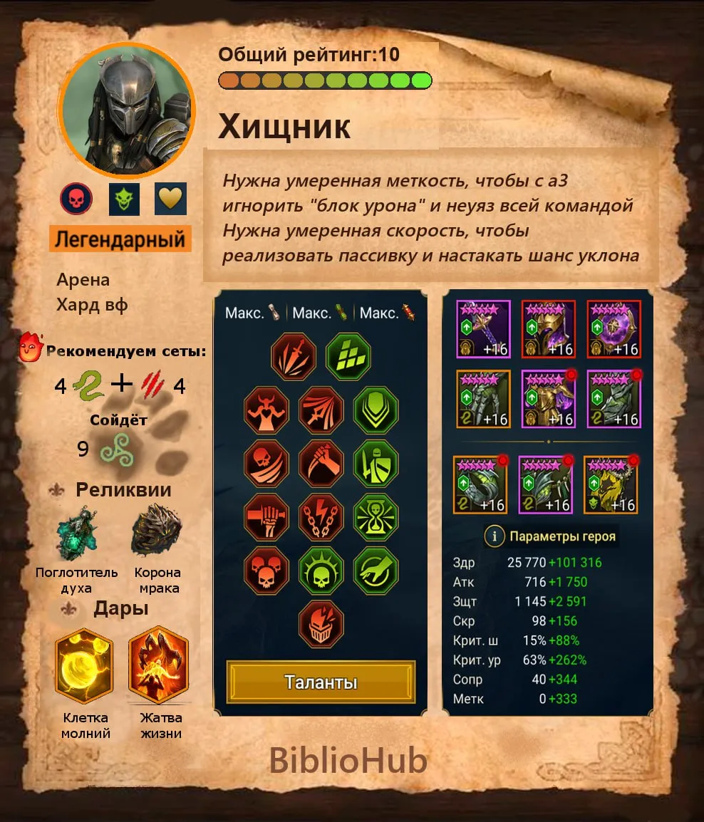 Видео-гайд на героя Хищник Raid Shadow Legends