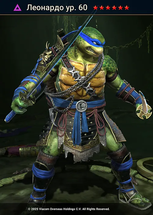 Леонардо Raid Shadow Legends — это легендарный чемпион Защитник фракции «Воины Сумрака», герой стихии Тьма. Силой единства Леонардо, как достойный представитель фракции теневых воинов, ведёт братьев в бой.