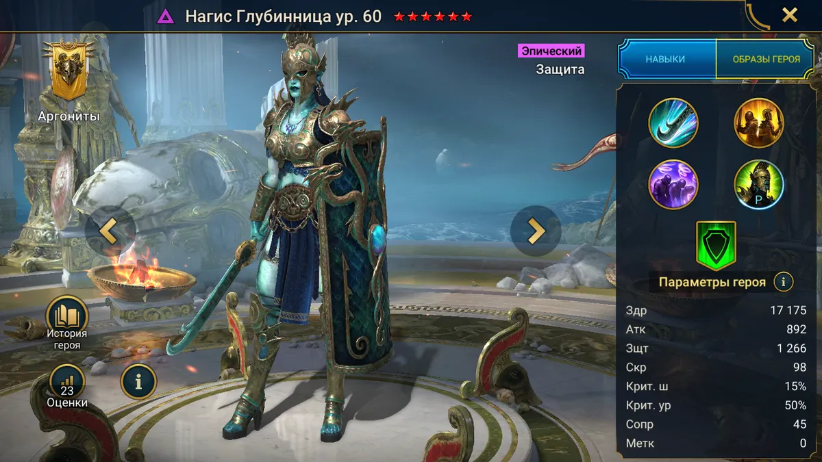 Нагис Глубинница Raid Shadow Legends — это эпический чемпион защитник из новой фракции 2026 года «Аргониты» из «Ниресийского Союза», относящийся к стихии Тьма. Её набор навыков занимает уникальную нишу на стыке поддержки, контроля и усиления ключевого союзника.