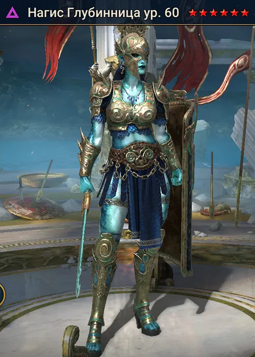Нагис Глубинница — чемпион, который объединяет в себе редкое сочетание постоянной командной поддержки через пассивку, мощного волнового контроля и возможности спасти одного союзника от любых негативных эффектов. Она особенно ценна в Битве фракций (Аргониты), Башне Судьбы и на Арене, где её способность перехватывать инициативу и защищать ядро команды раскрывается в полной мере.