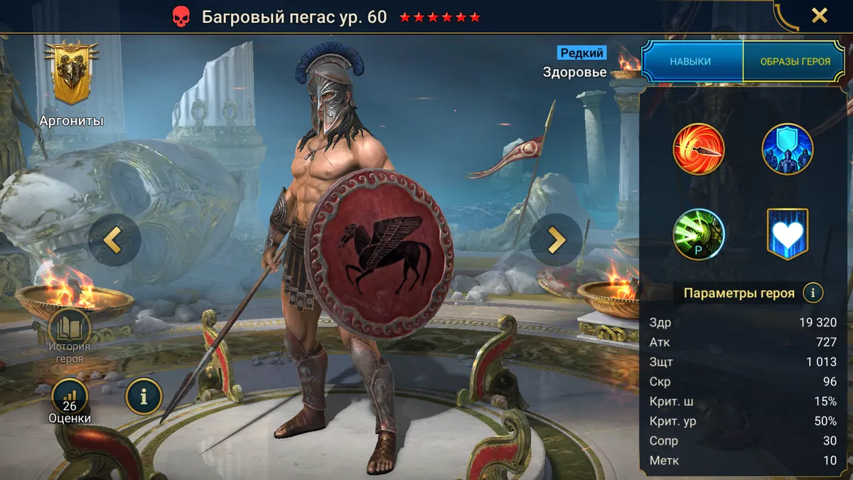 Багровый Пегас Raid Shadow Legends – это редкий чемпион, играющий с акцентом на «Здоровье» из новой фракции 2026 года «Аргониты» из «Ниресийского Союза», относящийся к стихии Силы.
