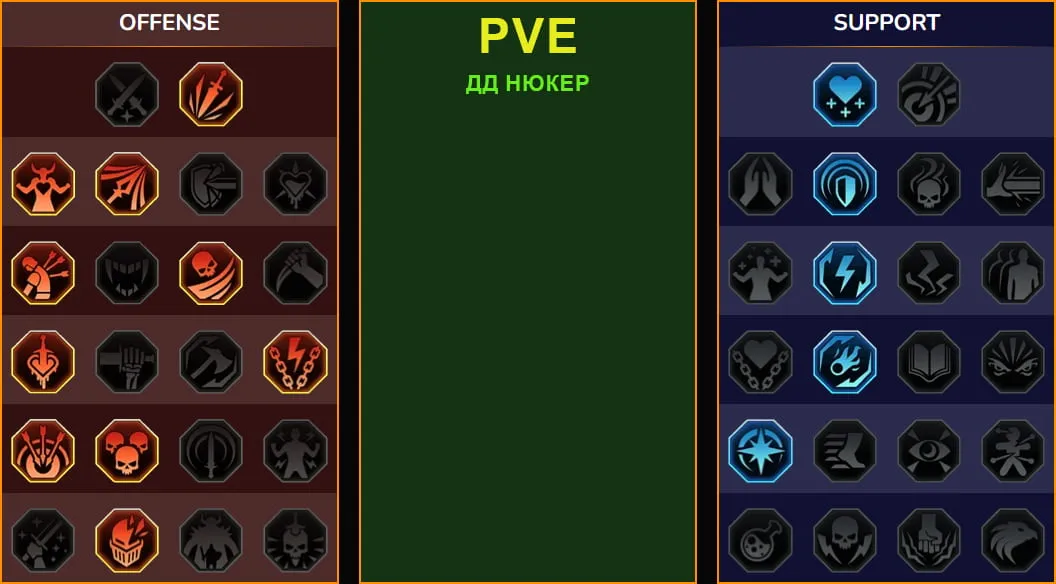 Постановщики дополнительных дебаффов (Горение, Яд, Ослабление атаки) — увеличивают длительность дебаффов на цели, тем самым усиливая множитель урона А2.