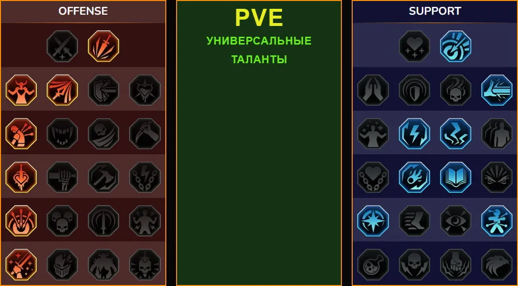 - накопление дебаффов на враге (например, Ослабление защиты, Горение, Блок активных навыков и т.д.);