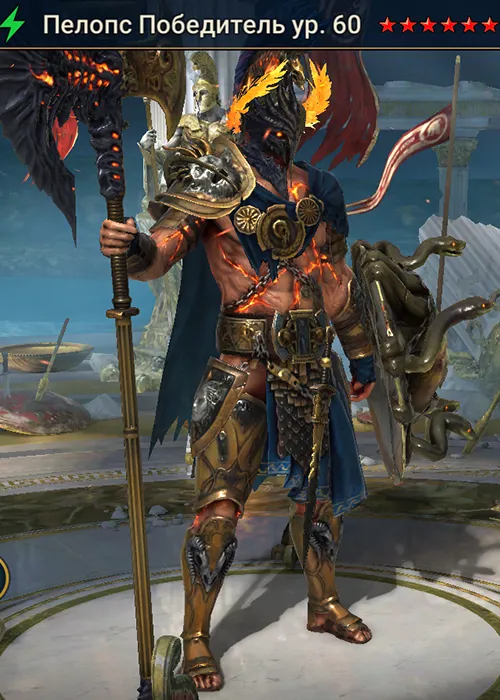 Пелопс Победитель Raid Shadow Legends — это легендарный чемпион, концентрирующийся на Здоровье из новой фракции 2026 года «Аргониты» из «Ниресийского Союза», относящийся к стихии Дух. Пелопс заявляет о себе как второй чемпион Слияния фракции Аргонитов.