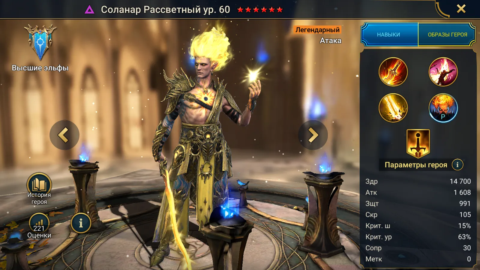 Соланар Рассветный Raid Shadow Legends — это легендарный атакующий чемпион из фракции “Высшие эльфы” стихии тьма и Лиги Телерии. Соланар появляется в игре в феврале 2026 года как специализированный герой для нанесения урона по одной цели и противодействия мгновенным эффектам.