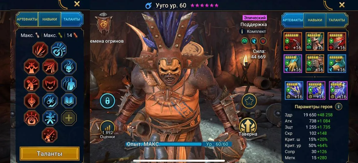 Ууго Raid Shadow Legends – это эпический герой из союза “Пакт Гаэллана” фракции “Племена Огринов”. Этот герой был добавлен 14.01.2021. Эта женщина-огр является высоко оценённым героем поддержки, ее несмолкающие барабаны ведут в бой орды огромных великанов своей фракции и племени.