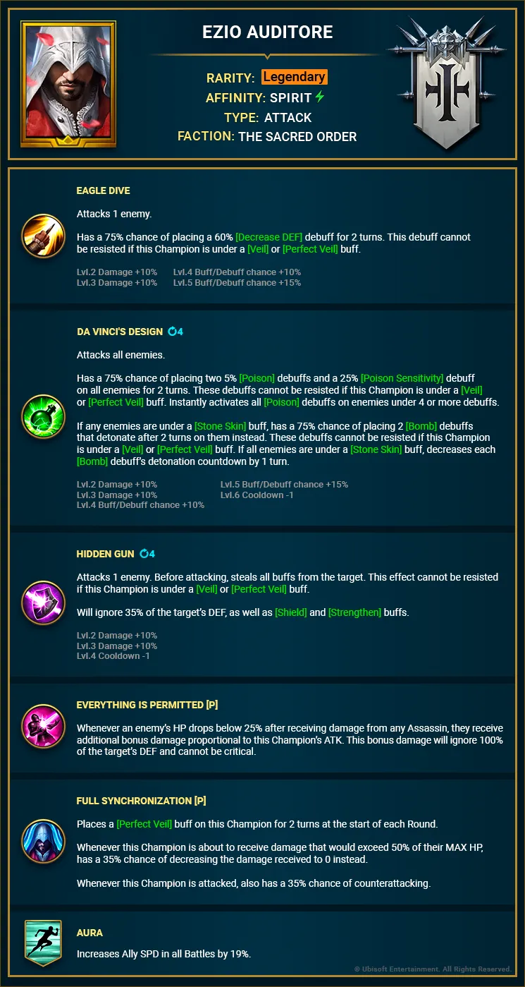 Ознакомьтесь с инфографикой умений, которую мы подготовили, чтобы представить героев события RAID × Assassin’s Creed!