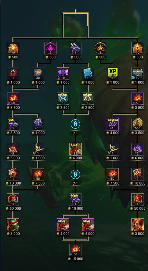 Если у Вас неограниченный бюджет – тут можно купить как и энергию, так и шарды – так как за их трату есть награда в виде шмота и героев, если бюджет есть, но он ограничен – мы рекомендовали бы купить баллы, награды за них не будет, однако самый дешевый способ закрыть путь. А для ФТП – либо полный скип события (кроме частиц слияния), либо только тратой энергии, так как Мы уверены, что шарды Вам еще пригодятся.