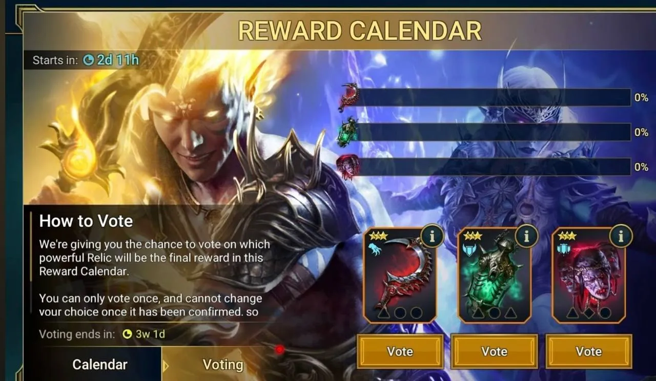 Календарь наград Raid Shadow Legends обновили, добавив больше гарантированных наград и расширив пул, включающий драгоценные камни, эпическое и легендарное снаряжение, а также другие ценные бонусы!