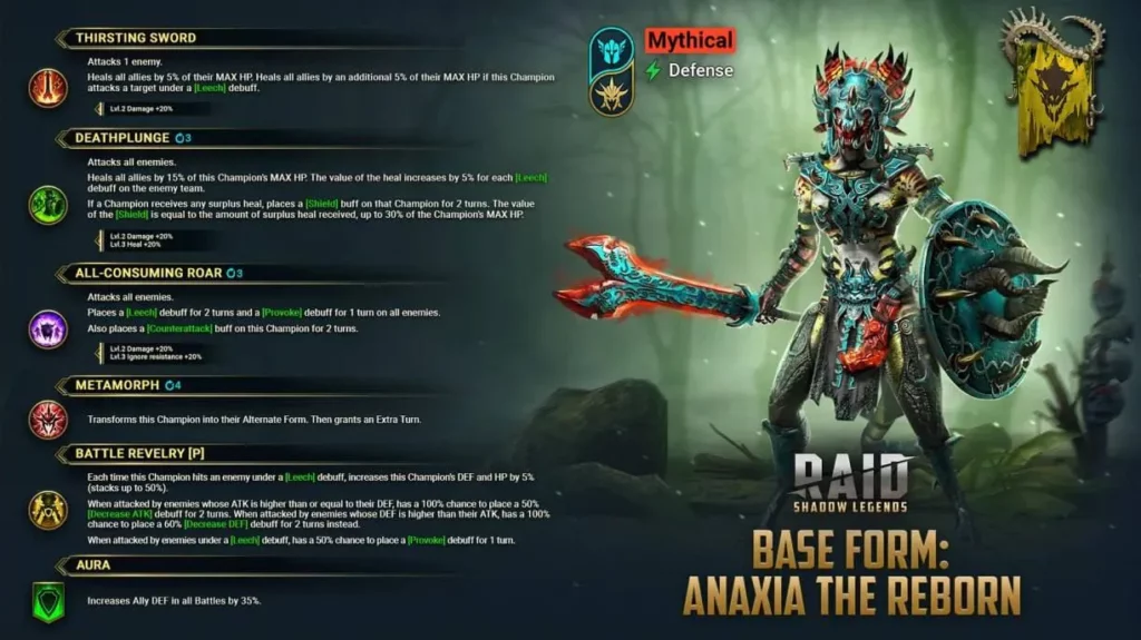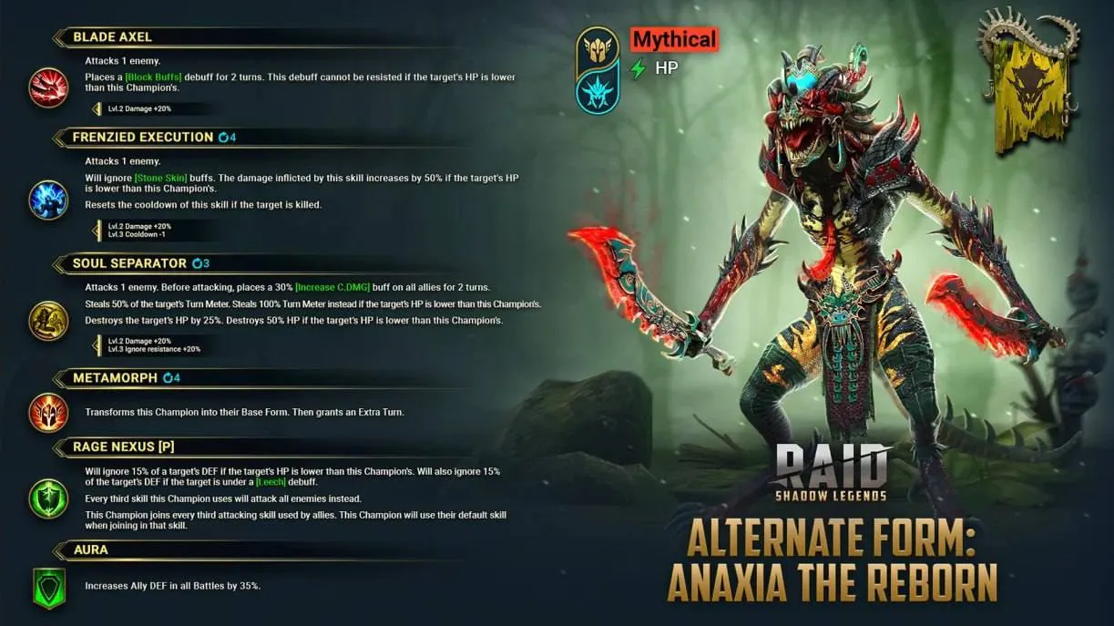 Анаксия — гибкий чемпион, который может стать опорой вашей команды или перейти в более агрессивную роль в зависимости от ситуации.