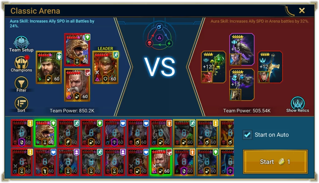Возможность видеть Реликвии во время битв на Арене и в Осаде была одним из других популярных запросов и мы намерены воплотить его в следующем обновлении. С версии 11.20 у вас появится кнопка «Посмотреть Реликвии» в окне выбора Героев перед началом битв в Классической, Групповой, Live-Аренах и Осаде. Нажав на эту кнопку, вы увидите, какая Реликвия надета на каждого из Героев, а также сможете прочитать информацию о каждой из них.