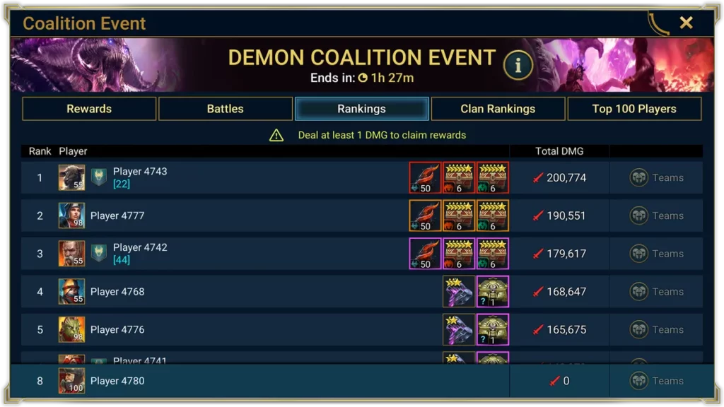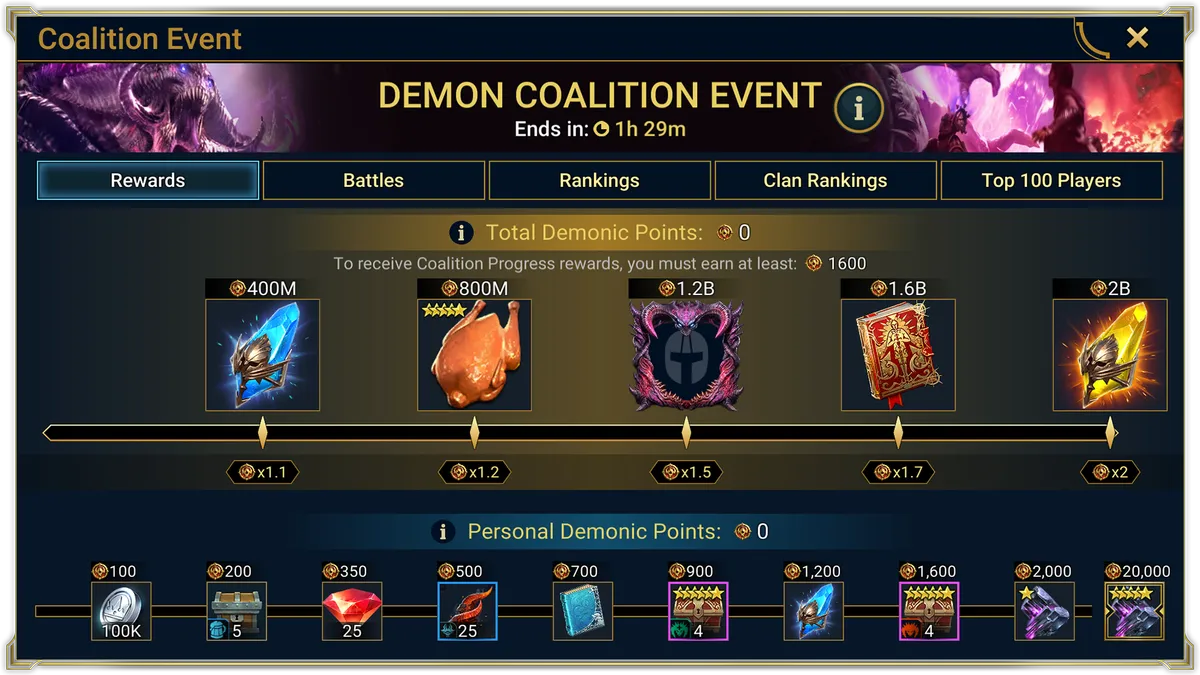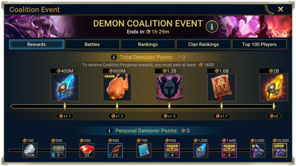 Событие Коалиции возвращается, но на этот раз с сюрпризом! Все сообщество столкнется с Одержимым Повелителем демонов — гораздо более сильной и жестокой версией Кланового босса, которого вы все так хорошо знаете. В отличие от обычных битв с Клановыми боссами, вам не понадобятся ключи или какие-либо другие ресурсы для участия. Однако ваш уровень должен быть не ниже 30-го.