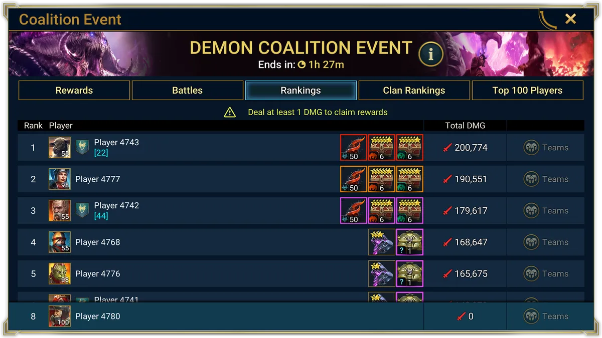 - Топ-100 — это соревнование лучших, где игроки, нанесшие наибольший урон Одержимому Повелителю демонов, получат свою минуту славы и подарки, соответствующие их достижениям.