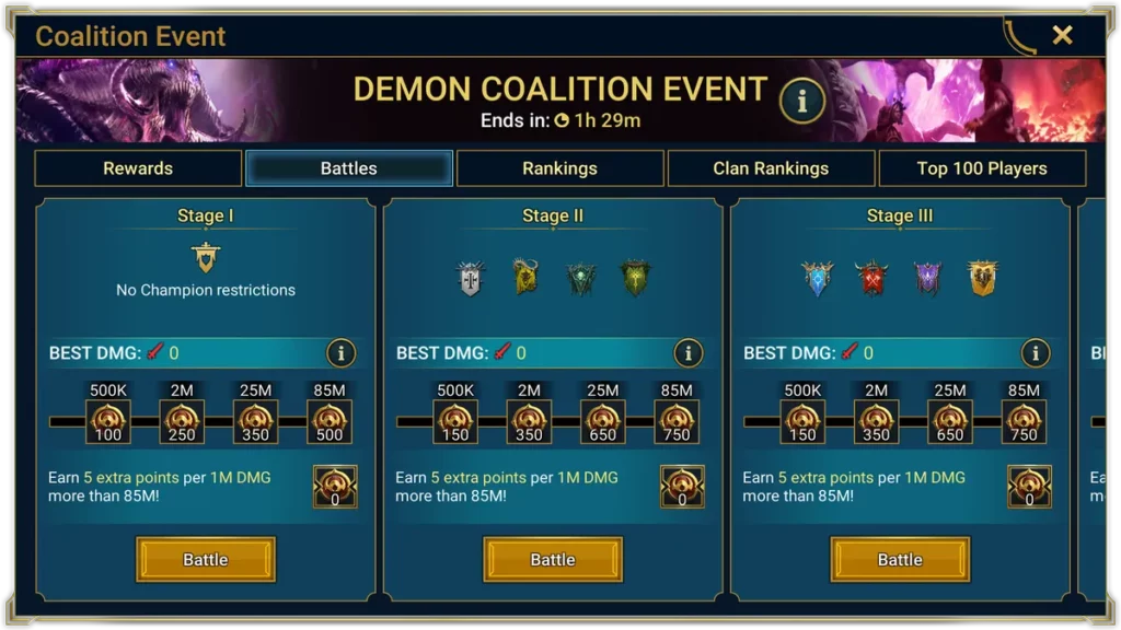 Обратите внимание: В повторных битвах множитель бонуса активируется только тогда, когда вы превзойдете свой предыдущий рекорд урона. То есть, если в первом бою вы нанесли 10 млн урона, а в следующем — 9 млн, дополнительные Очки начислены не будут.