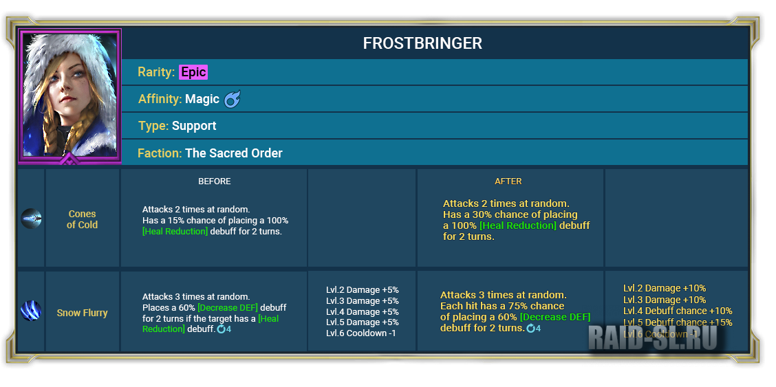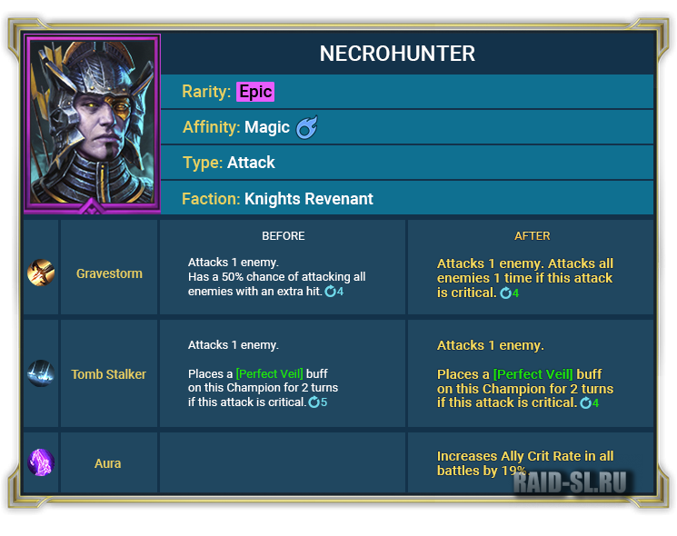 Также будет небольшое изменение в вероятностях выпадения эпических и легендарных материалов в Криптах фракций. Шансы для Легендарных материалов немного снизятся, а шансы для Эпических возрастут на тот же процент. Это изменение необходимо для корректировки баланса наград, а также как дополнительный шаг для решения проблемы нехватки Эпических материалов при переизбытке Легендарных у активных игроков Войн фракций.