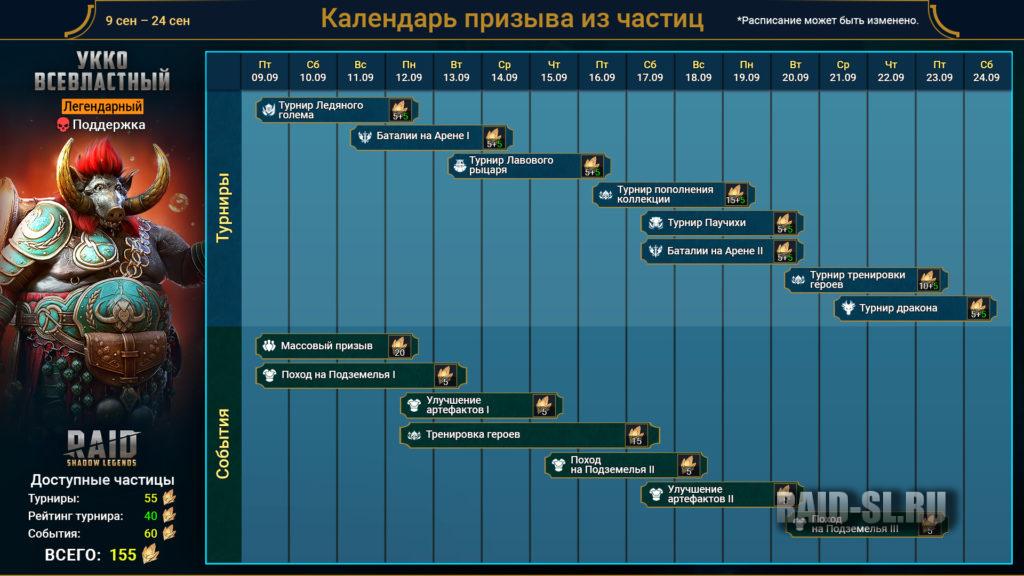 - Турнир тренировки героев (20–23 сентября), 10 частиц (+5).
