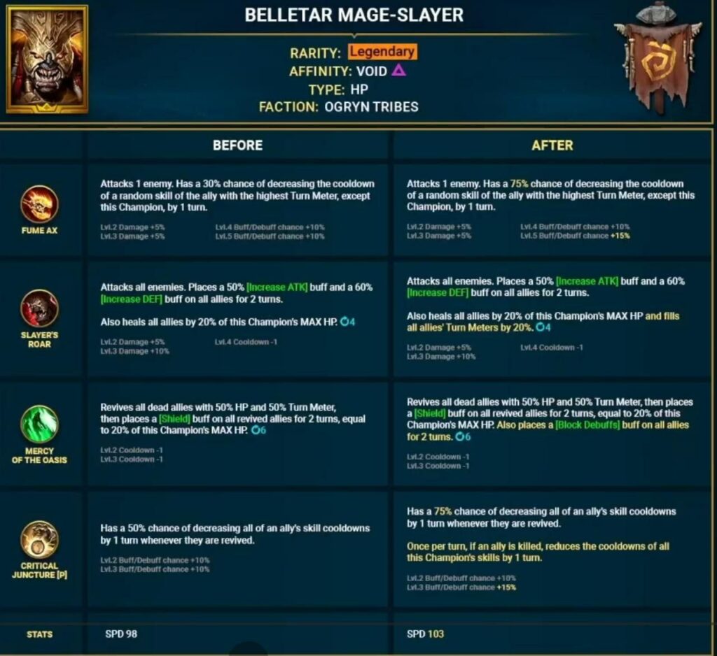 Скорость обоих героев увеличена: Нарма – до 100, Беллатар – до 103.