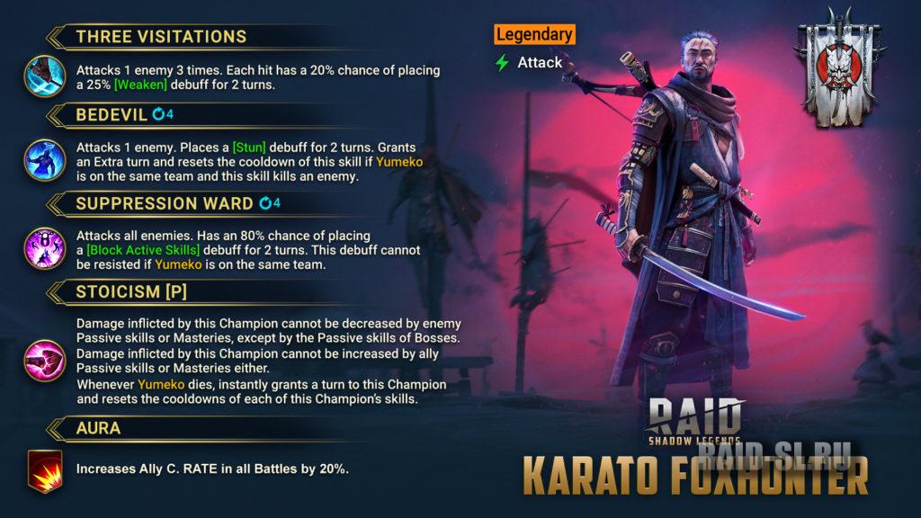 Синергия с другим Героем, – Юмеко – дает Карато дополнительный ход на А2 и исключает необходимость наличия Меткости для А3. Кроме этого, это позволяет взамен повысить навыки Юмеко.