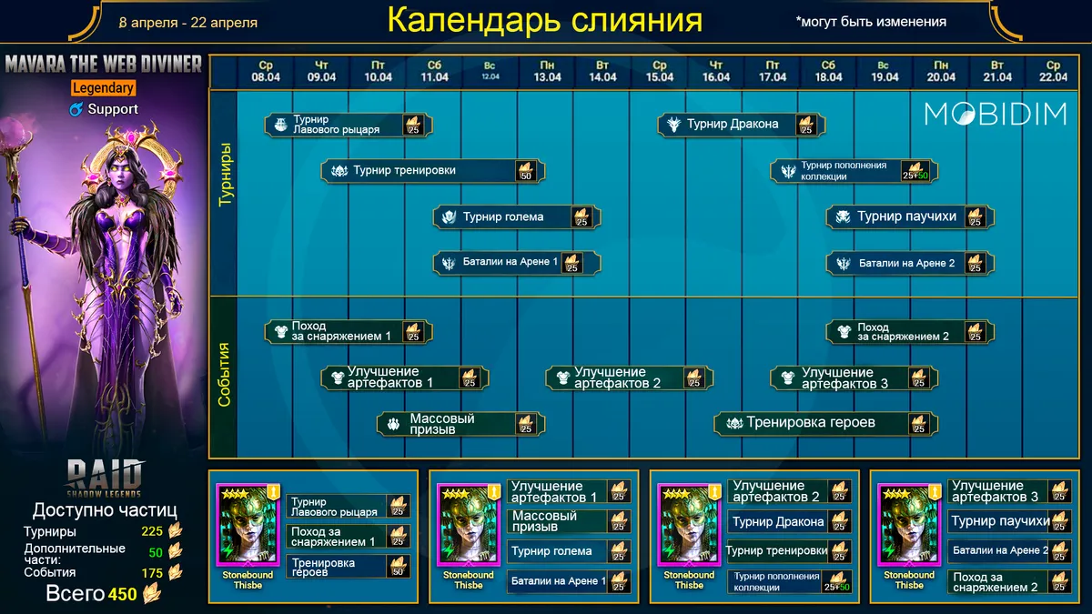 По случаю Недель сообщества – 2026 состоится новое событие слияния. С 8 по 22 апреля у тебя есть возможность создать легендарную героиню из фракции Тёмных эльфов – Мавару Угадницу. Чтобы её получить, тебе понадобятся четыре Фисбы Окаменевшие.