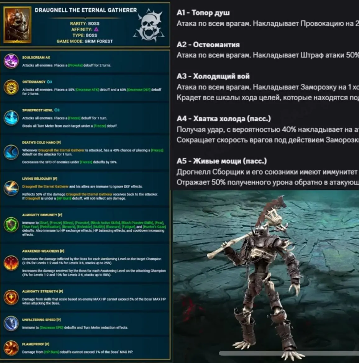 Получая удар, с вероятностью 40% накладывает на атакующего Заморозку на 1 ход.