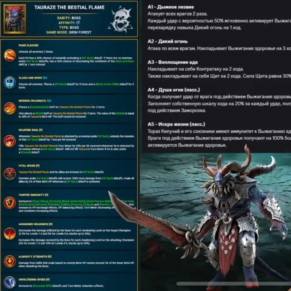 Каждый удар с вероятностью 50% мгновенно активирует Выжигание здоровья. Если нет врагов под действием Выжигания здоровья, с вероятностью 50% уменьшает перезарядку навыка Дикий огонь на 1 ход.