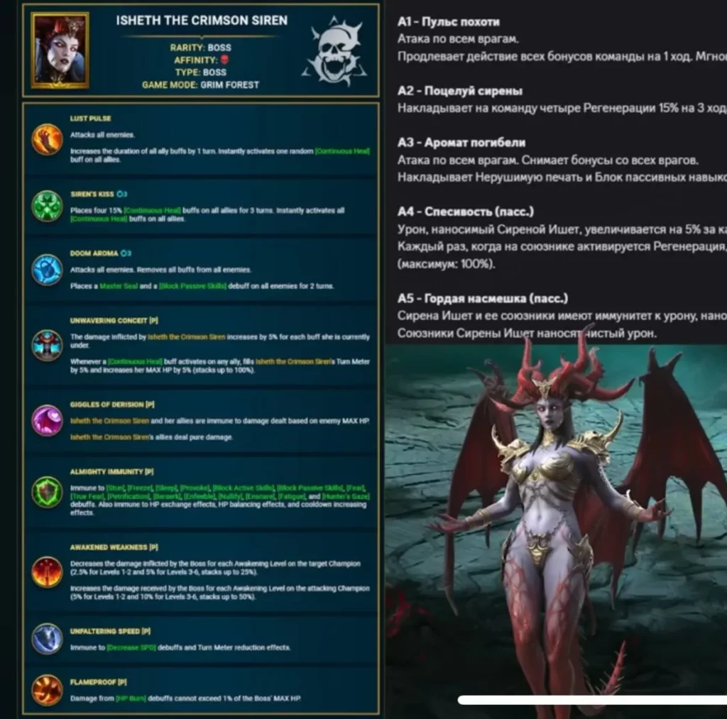Урон, наносимый Сиреной Ишет, увеличивается на 5% за каждый бонус, под действием которого она находится.