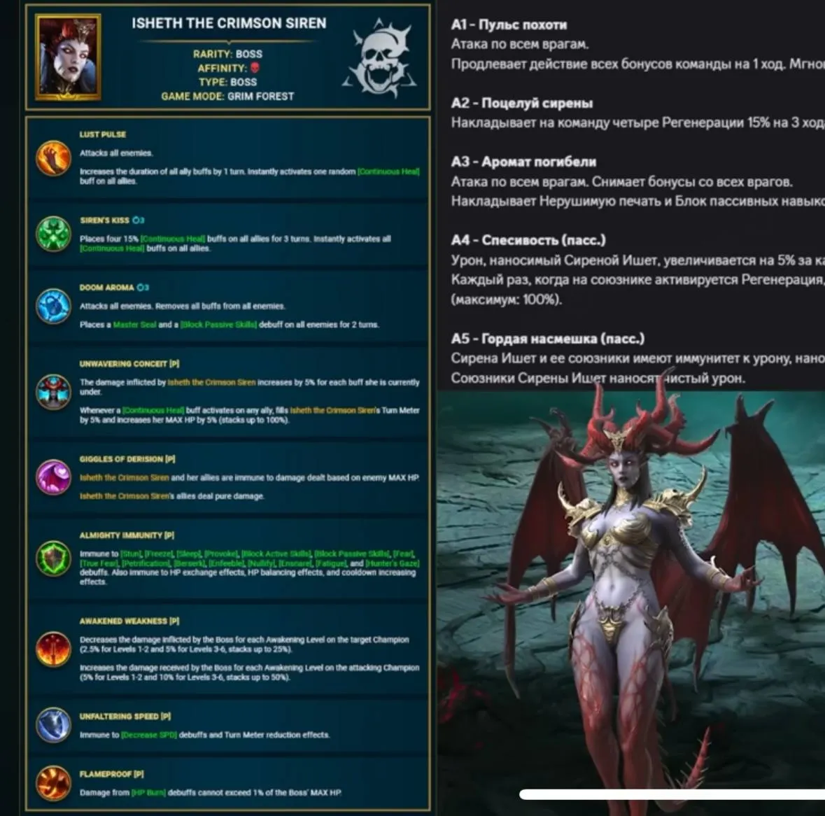 Сирена Ишет и ее союзники имеют иммунитет к урону, наносимому на основе максимального здоровья врага.
