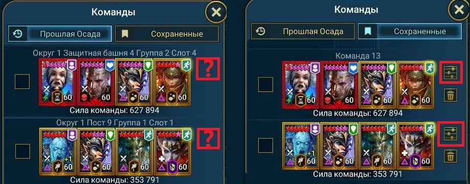 Если использовать вкладку «Прошлая осада» и выставлять сохранённые оттуда команды, они будут без пресетов. Вероятно, на это указывало отсутствие индикатора настроек пресетов, но подтвердить проблему удалось только сейчас — после появления возможности тестировать защитные команды.